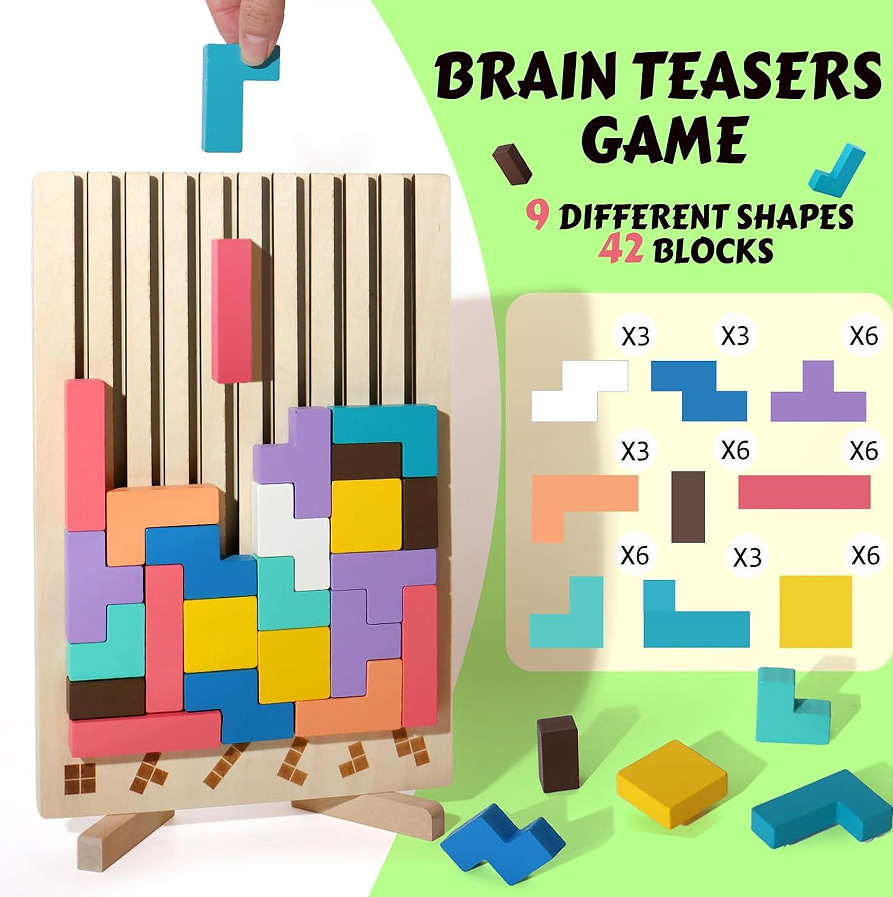 Wooden Russian Blocks Tangram Jigsaw Puzzle for Toddlers 3-6